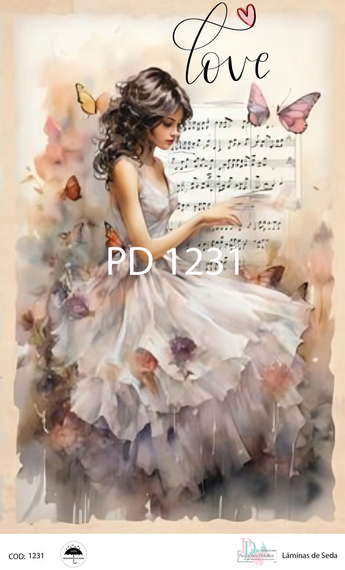 Lámina de decoupage A4 en papel de seda – Diseño romantica