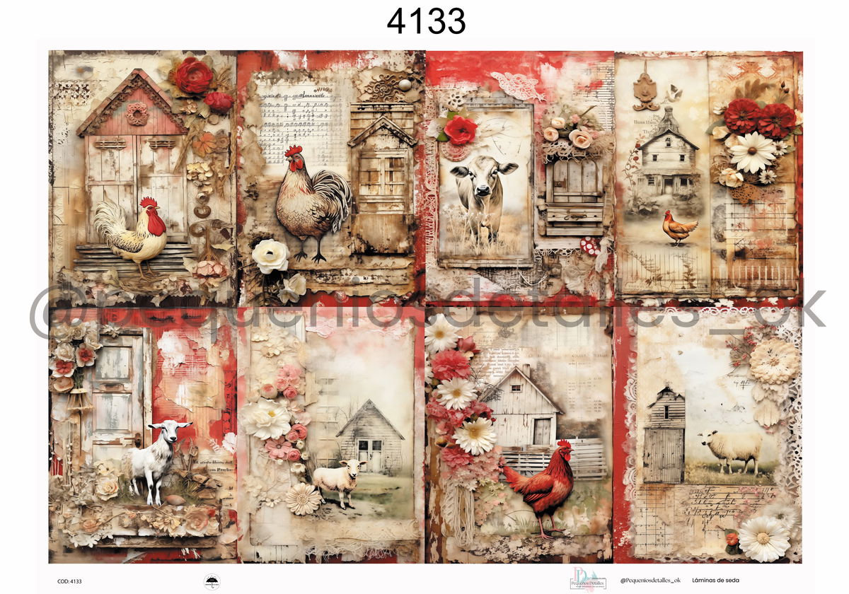 Lámina de Seda 50x70 cm en papel de seda – Diseño granja