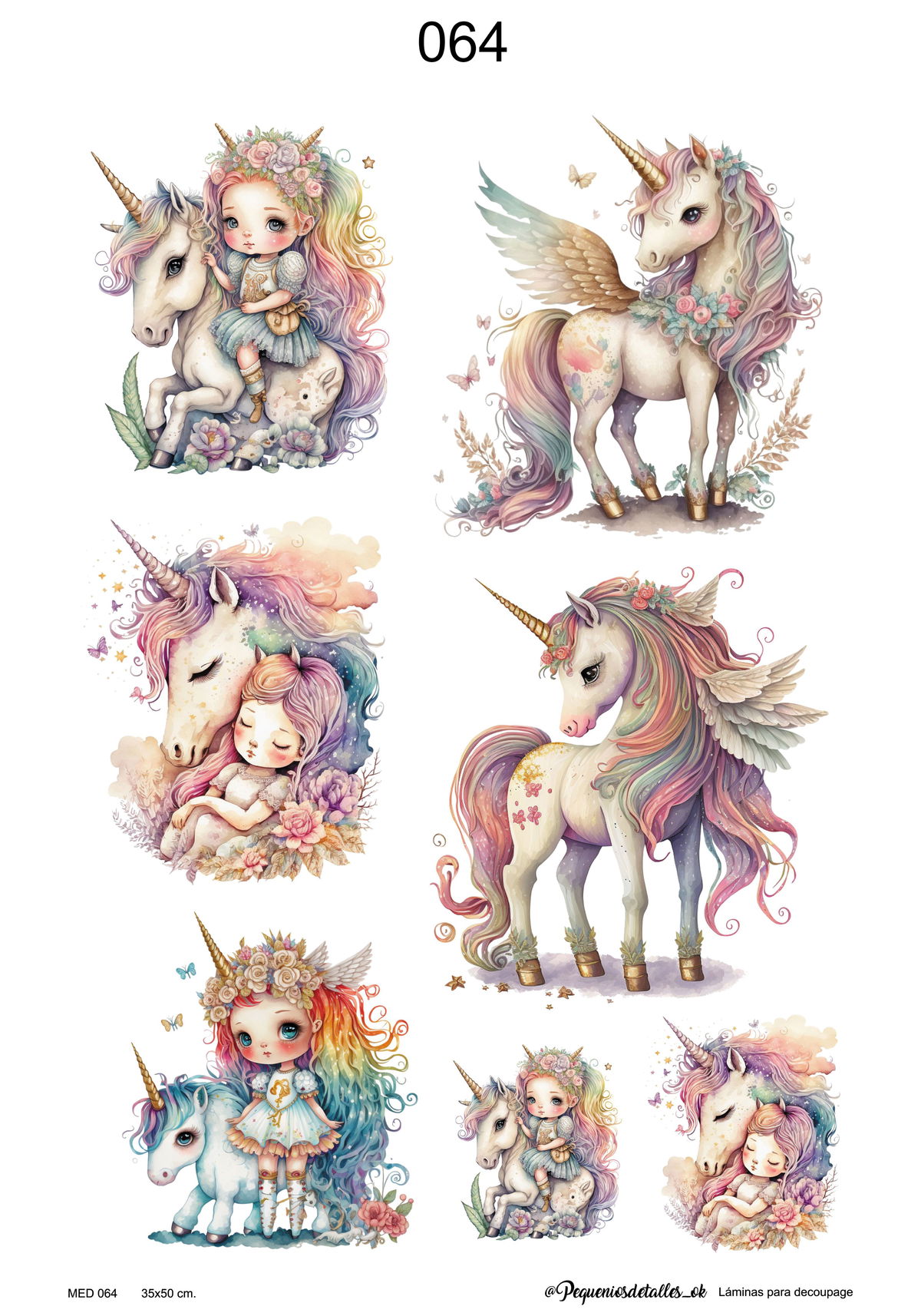Lámina de Seda 35x50 cm en papel de seda – Diseño unicornio